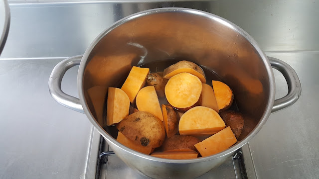 넘 커서 잘 안익을까봐 잘게 잘라서 물에 넣고 삶도록 한다